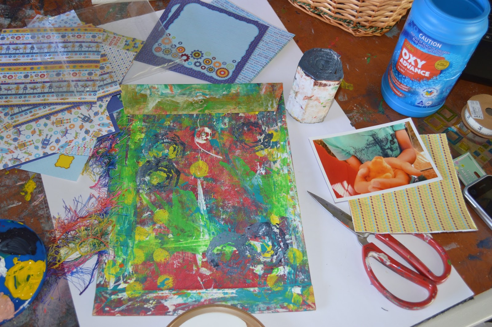 Using my hand painted envelope mixed media ready to use of different various sizes,I'm gonna pimp this page so I want to share this layout with you & it is easy peasy. You will need scissors,glue stik,another stronger glue,designer papers of your choosing,a tp roll,a mixture of runny white acrylic paint,a photo of your choice ,a journaling pen & embellishments of you choice.
